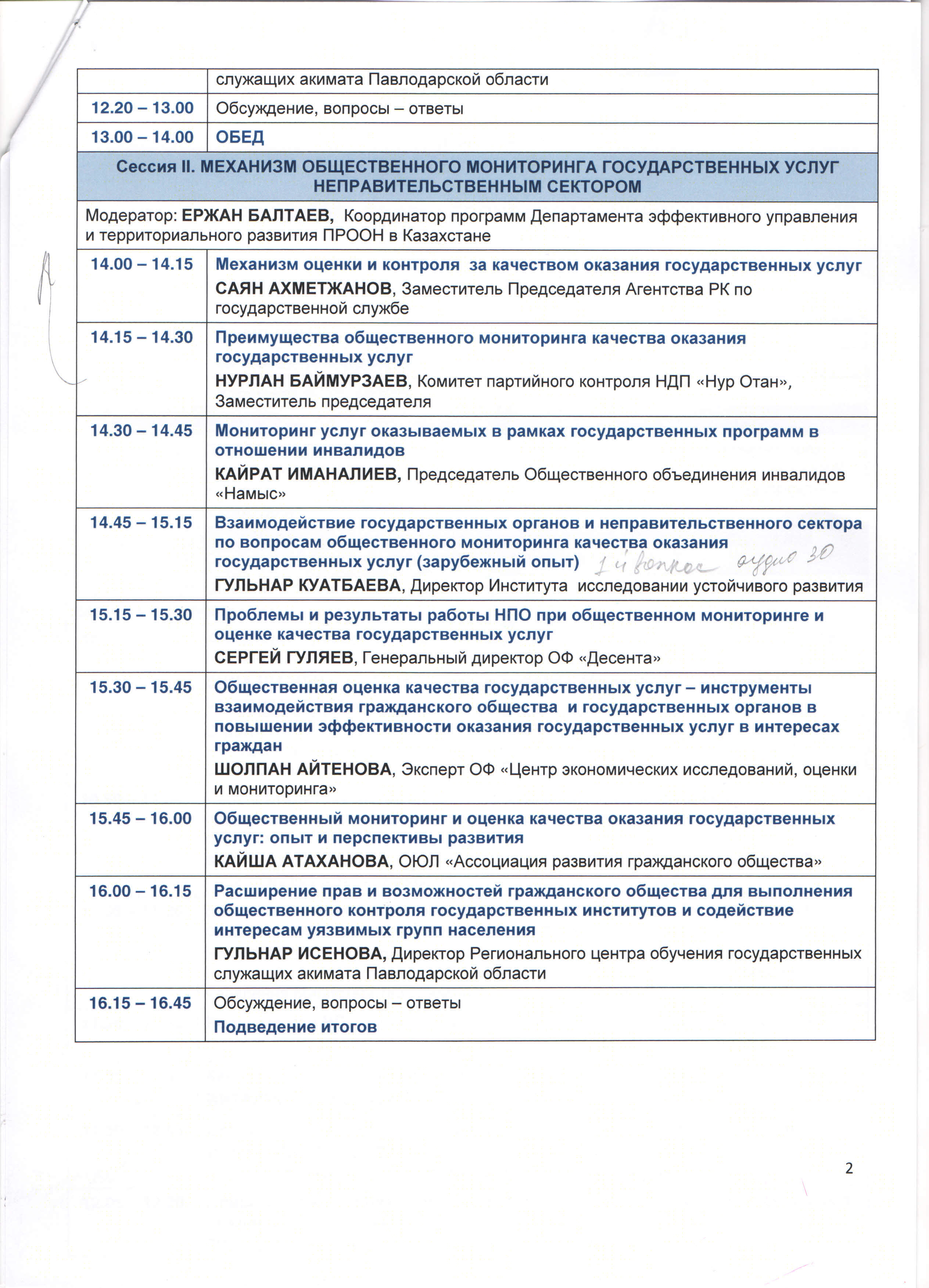 10 августа 2012 года в г.Астана состоялся круглый стол на тему «Развитие сферы государственных услуг в Республике Казахстан» , велось оживленное обсуждение проектов законов «О государственных услугах» и «О внесении изменений и дополнений в некоторые